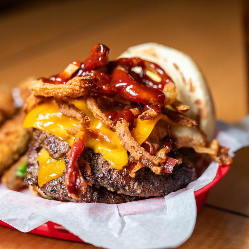 Includes one side | Light Weight: 1/3 lb Burger | Middle Weight (Double) +$5.00 | Heavy Weight (Triple) +$10.00 • CHEESE SELECTIONS: American, Cheddar, Pepperjack, Provolone, Swiss, Blue Cheese, Nacho Cheese • Ghost Pepper